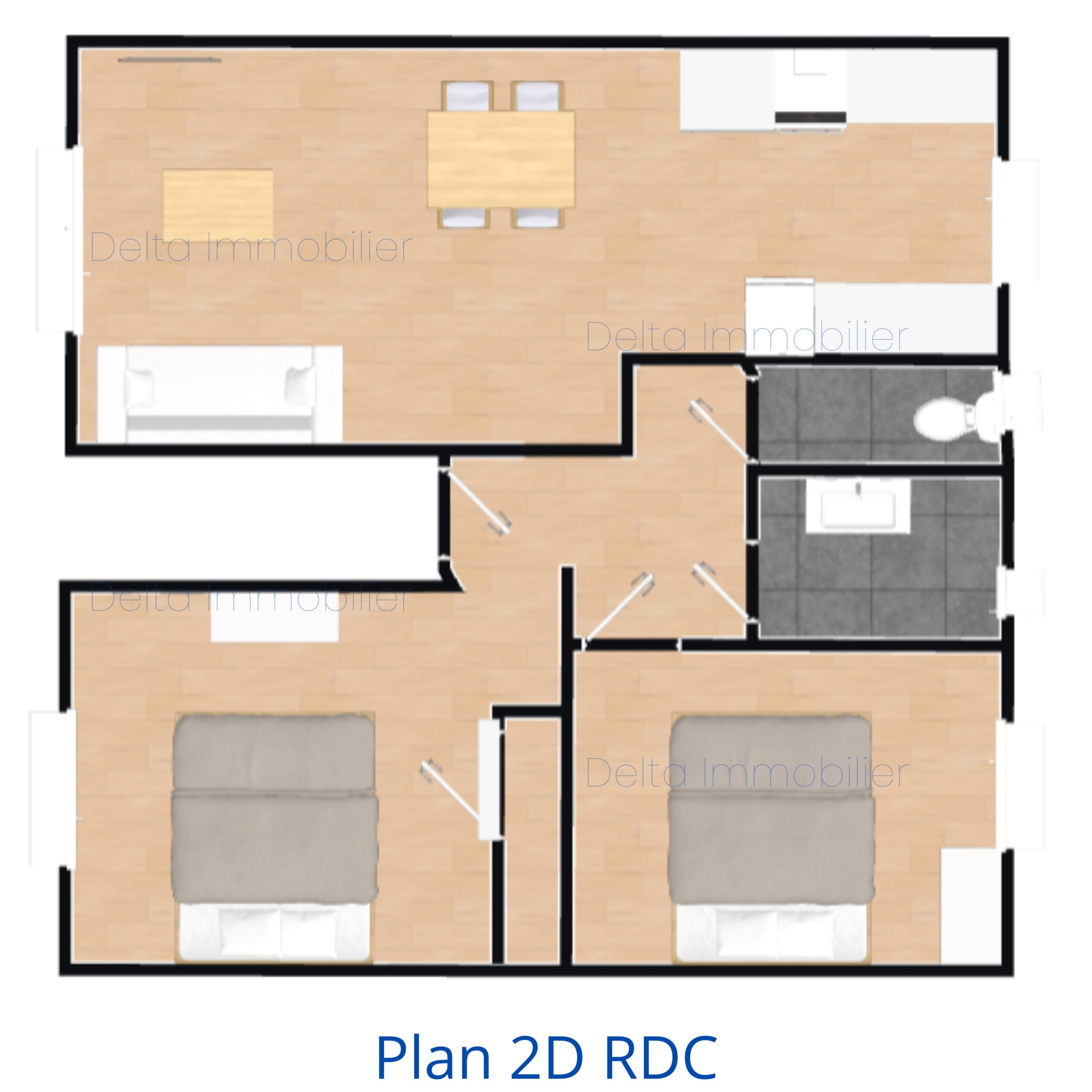 maison en excellent état offrant entrée, salon/ séjour avec cuisine aménagée et équipée, deux chambres, salle d’eau, wc,