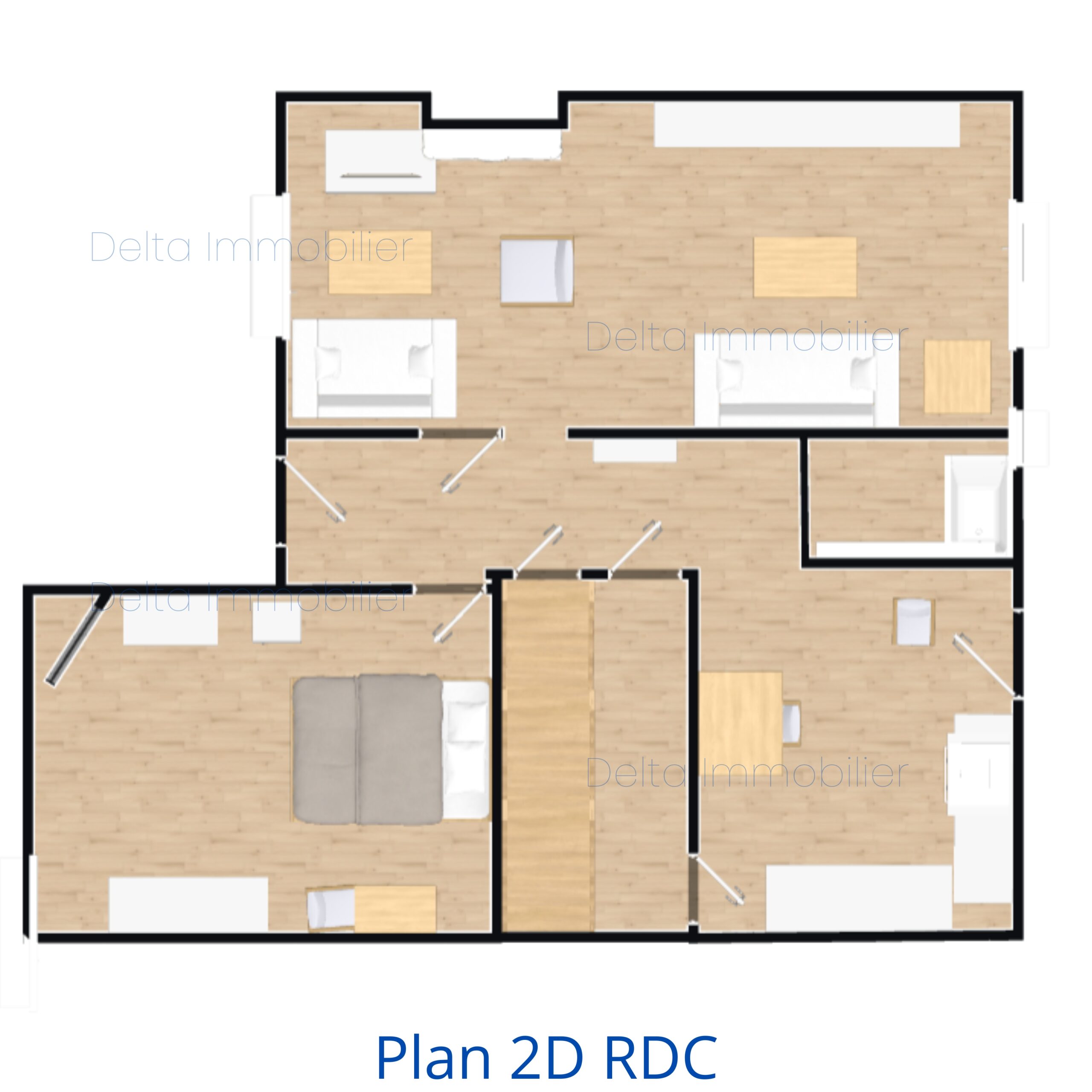 maison offrant entrée, salon/séjour, cuisine aménagée, quatre chambres, salle d’eau, wc.