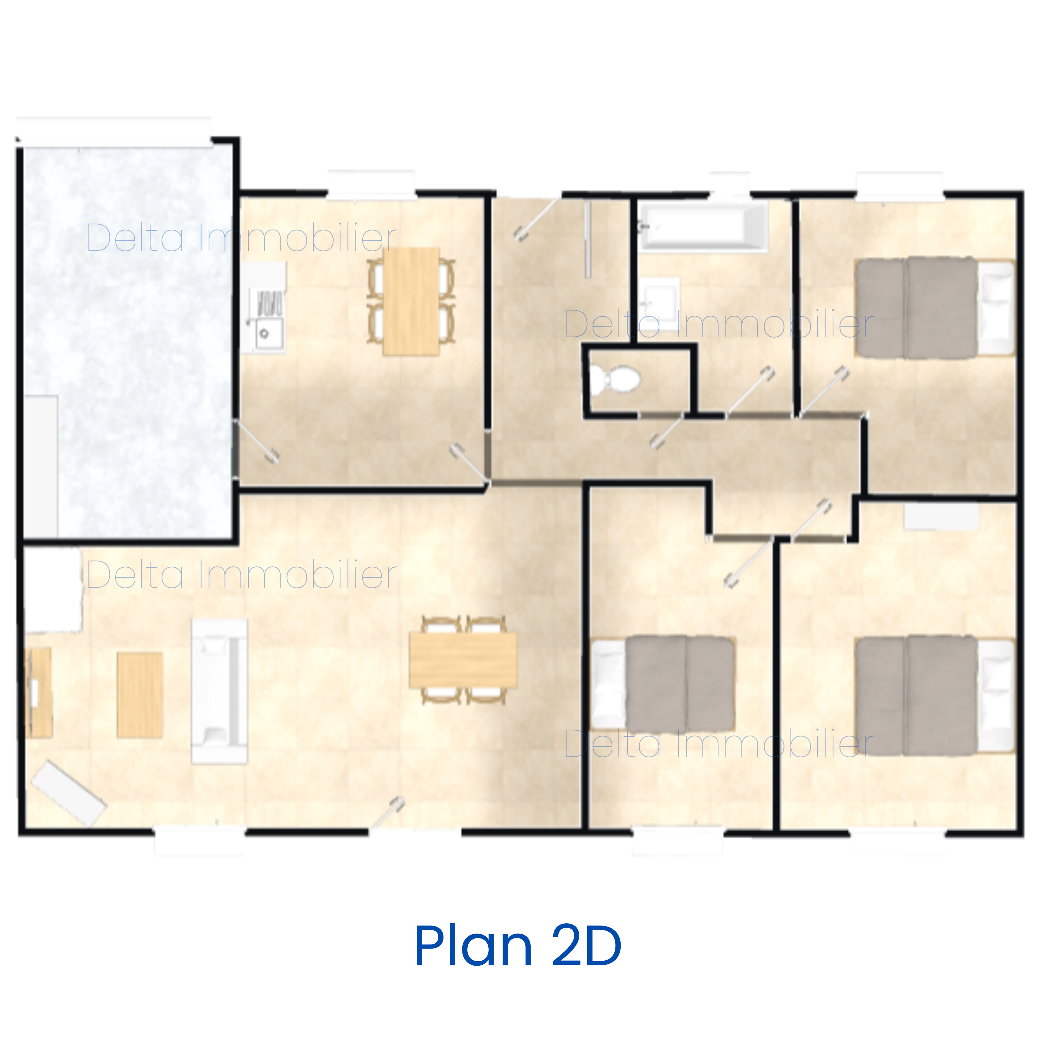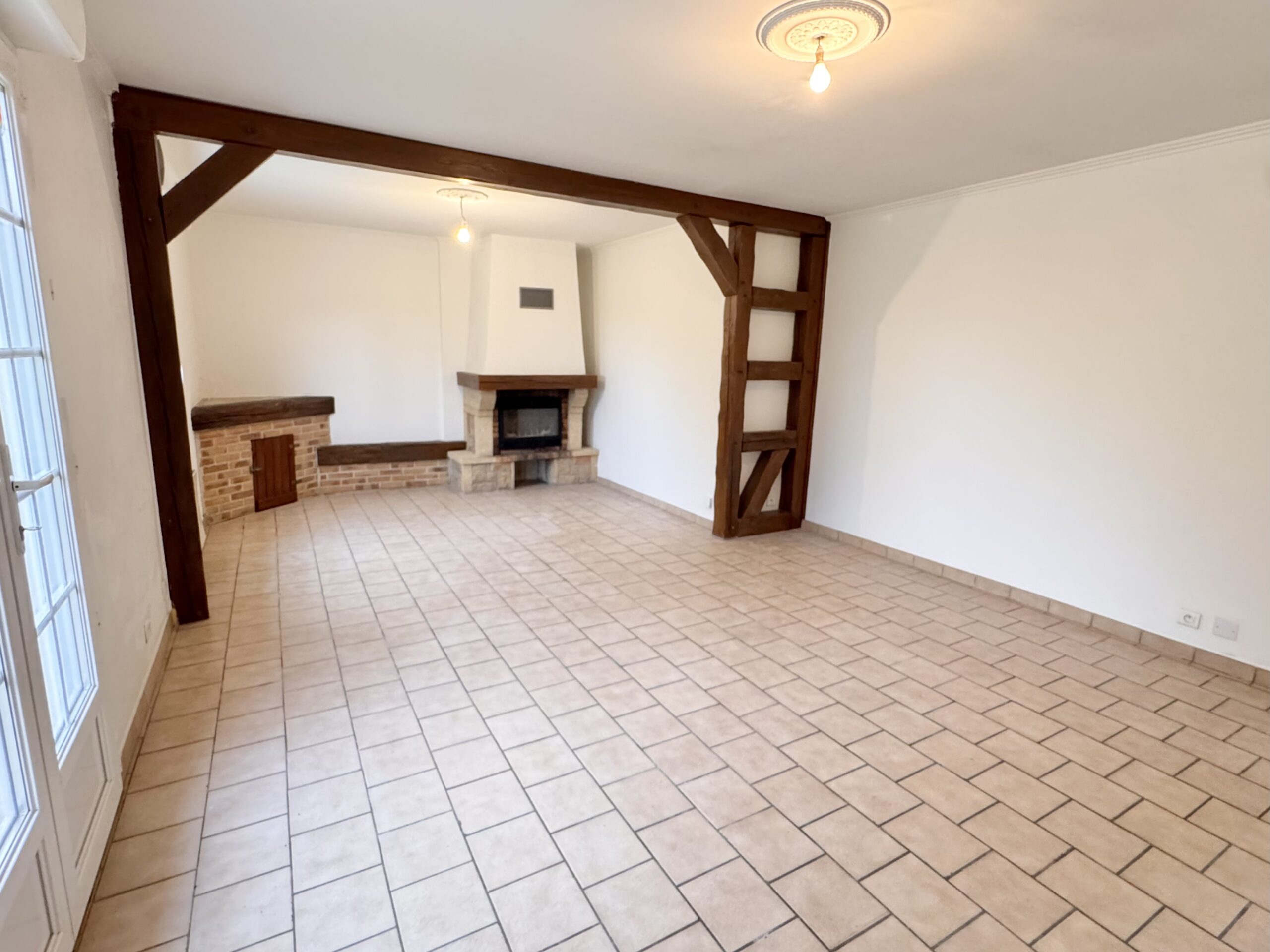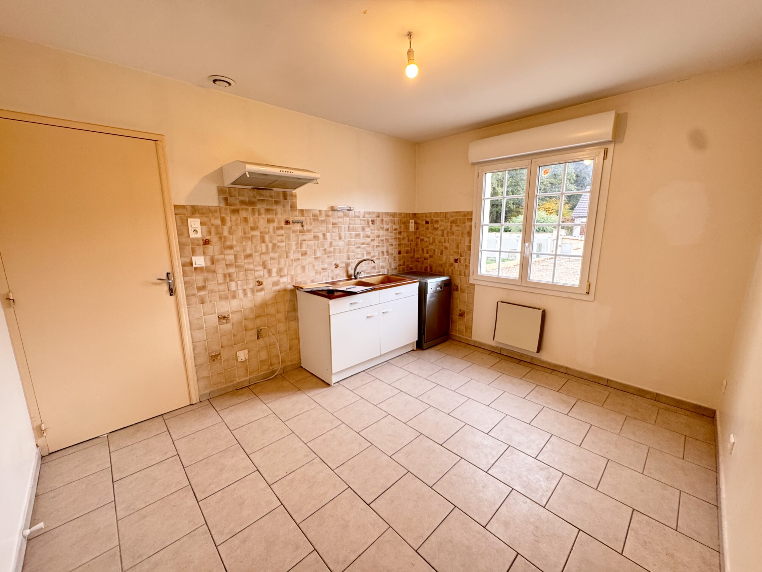 maison de plain pied offrant entrée, salon/séjour avec cheminée, trois chambres, salle de bains, wc, garage, dépendance.